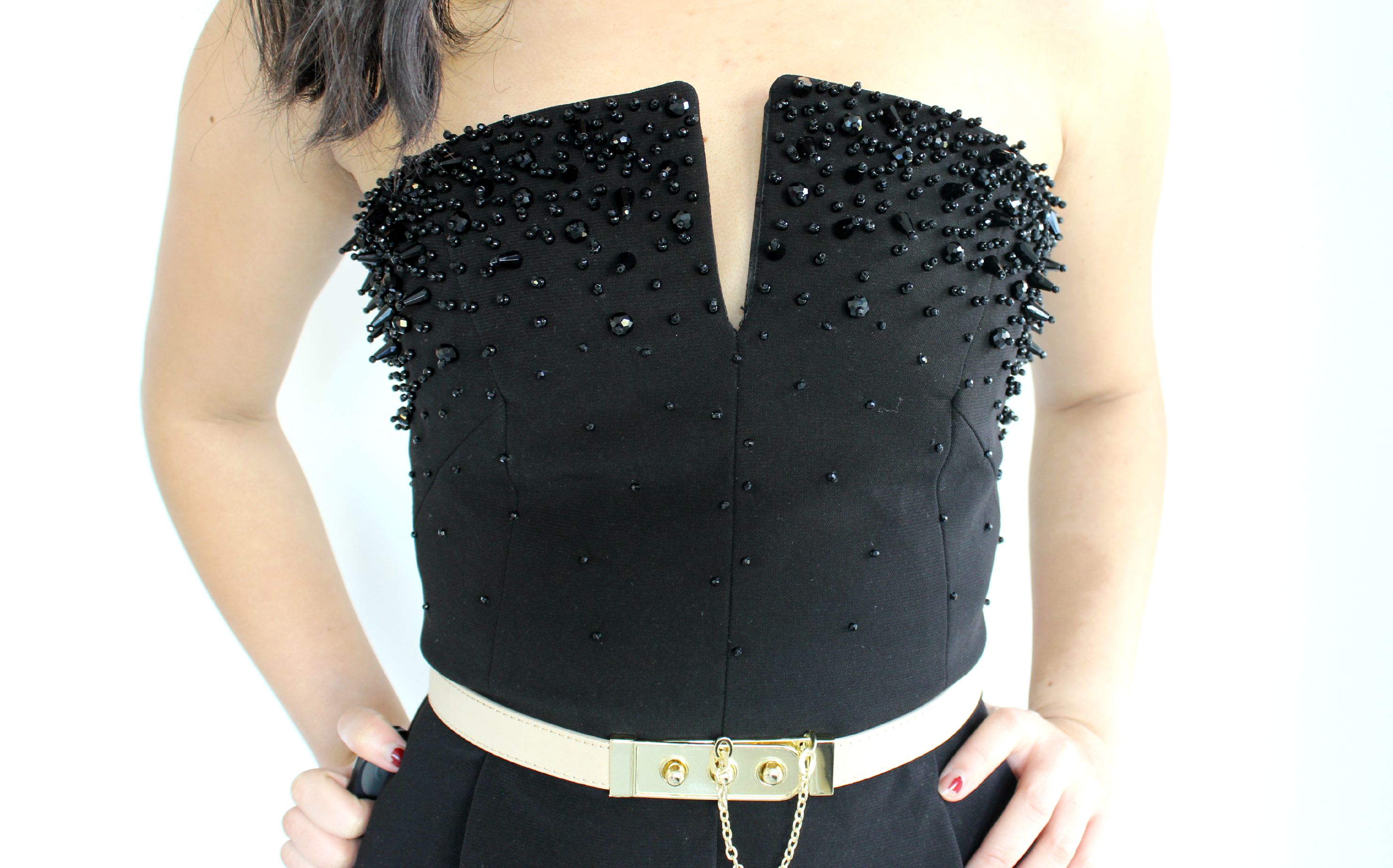 This a better shot of the top part of the jumpsuit where you can see the beaded bodice. My belt is from Karen Walker.