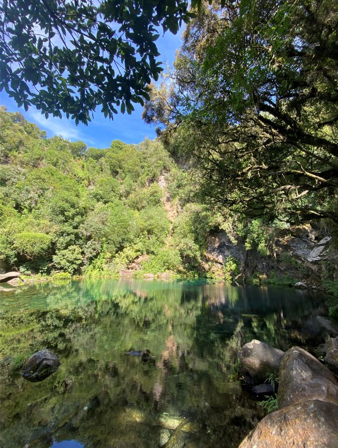 The next day, we packed up to leave and ended up looking for the lost lagoon in Kuratau. The way to this lagoon is interesting and it’s apparently a ‘secret’ spot for locals. I say secret loosely because it’s a popular spot but you can’t google where it is. This was the view on the way to the lagoon.