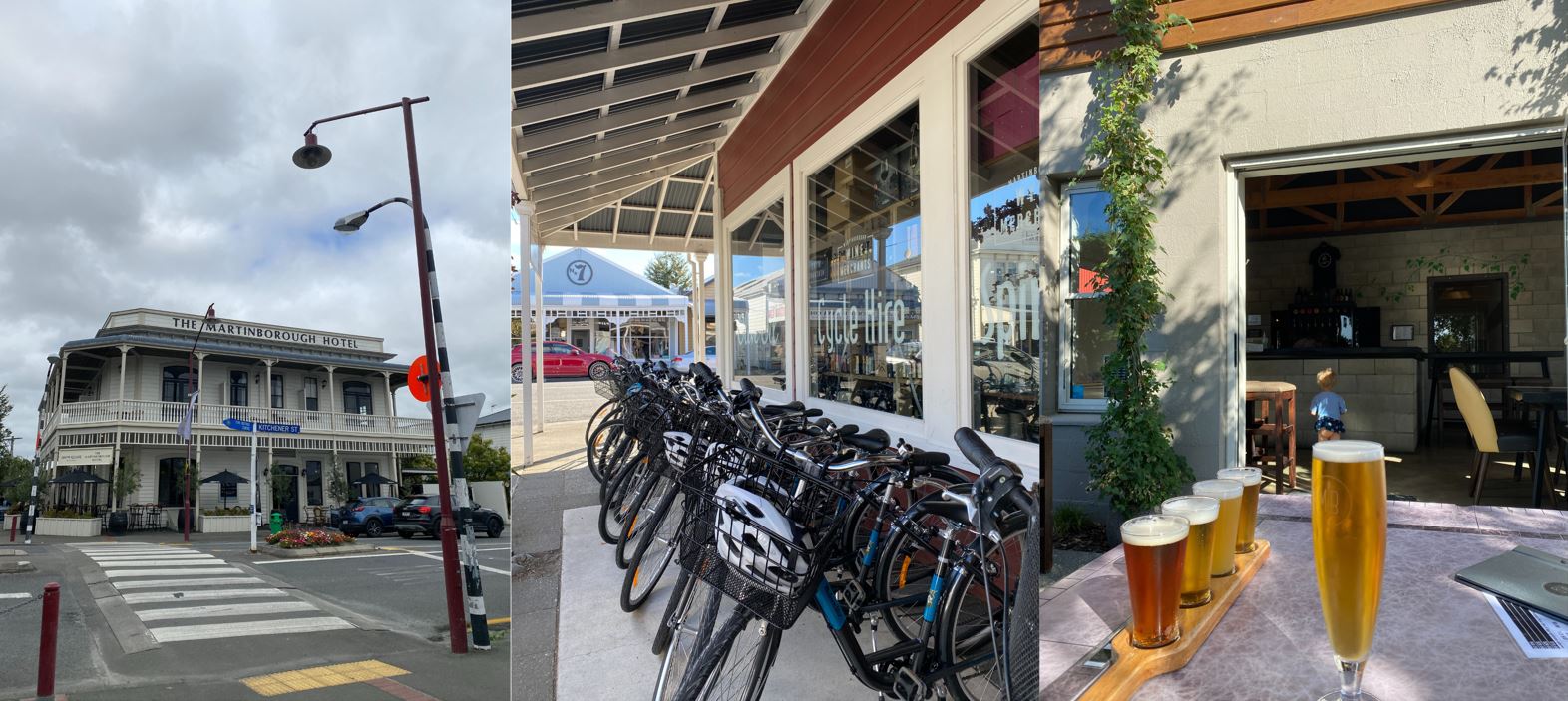 For our full day in Martinborough, we walked to town, hired bikes and cycled through to some vineyards. Then we ended the day at the Martinborough brewery.