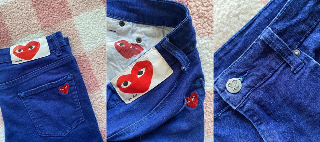 Also bear in mind checking if an item is real. In these opshops, authenticity is not guaranteed so do your checks. For this CDG PLAY jeans, the button and all hardware had either the logo or PLAY embossed, the zipper is YKK and even the inside of the pockets had the heart logo. So besides the embroidery on the back pocket, the details of these jeans were great. I also googled it and a listing for this brand’s jeans had all the same details. It’s good to check.