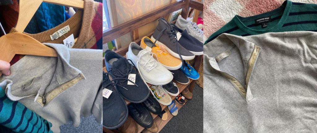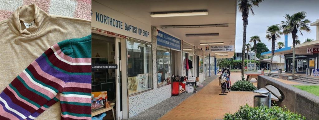 This shop has expanded so it’s even bigger now but the clothes section is smaller / more limited than the Takapuna Auckland City Mission shop. The prices are cheaper though. I got the Seed knit and Portmans striped sweater for $6 each.