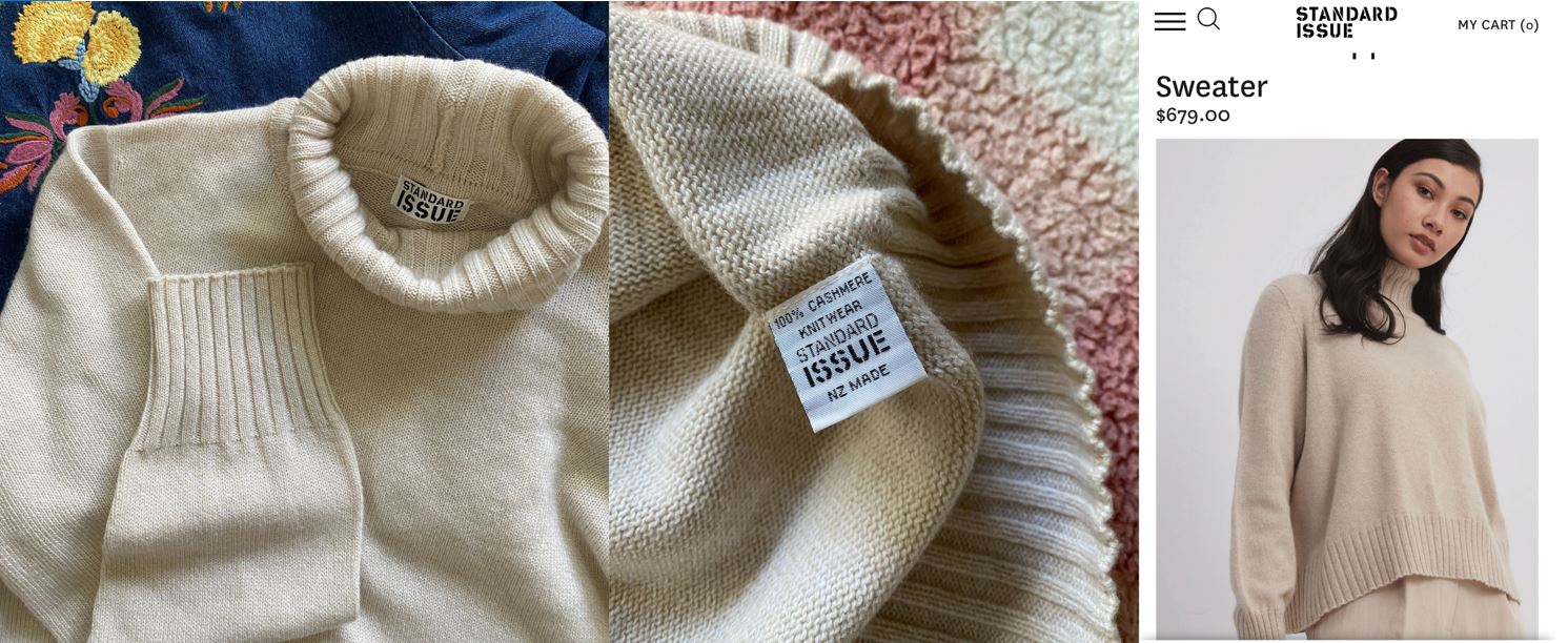 Recently, I found this gem of Standard Issue 100% cashmere sweater. It was $24 and I knew the brand is a NZ brand but I had no idea how much they are until I got home. I was stoked when I checked the inside label that it’s cashmere and NZ made. I’ve been looking for a cashmere knit for this winter season and the ones I’ve had on my wishlist on Trademe have been $100+. For $24, this was such a steal and it’s still in the website for $679!