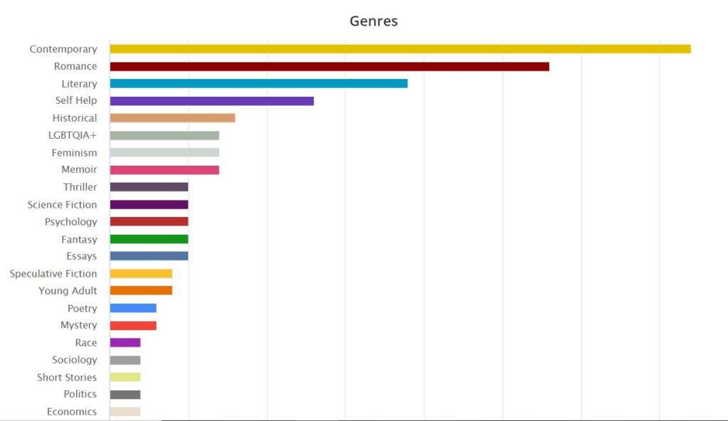 Based on my Goodreads stats, I read about 33,000 pages. I mostly use Goodreads to track what I’ve read, my rating and when I read them but I imported my GR data into Storygraph and it has more stats which I found interesting: