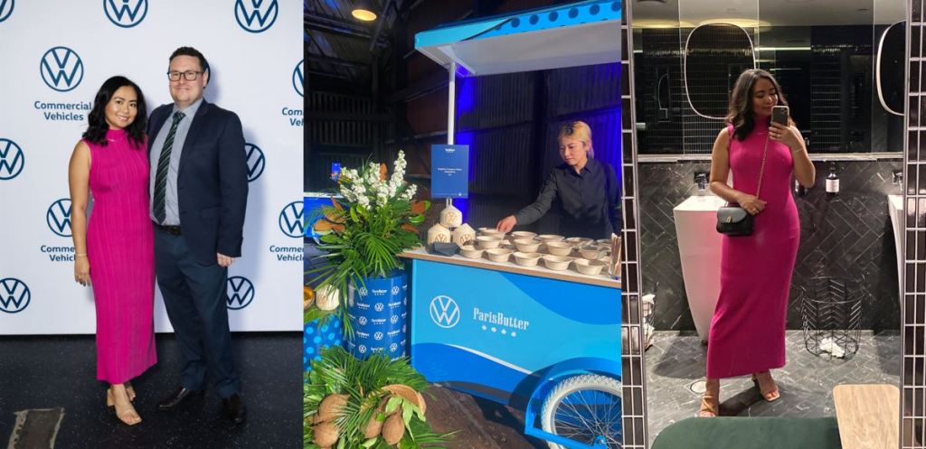 A few weekends ago, I tagged along with Max for his work event where we got to dress up. I wore this Kookai dress I found on sale and I loved the colour. I don’t usually like a bodycon-type fitting dress but Joan insisted I looked good in it. I was initially conscious of my body but I loved the colour and how the material of the dress so I wore it.