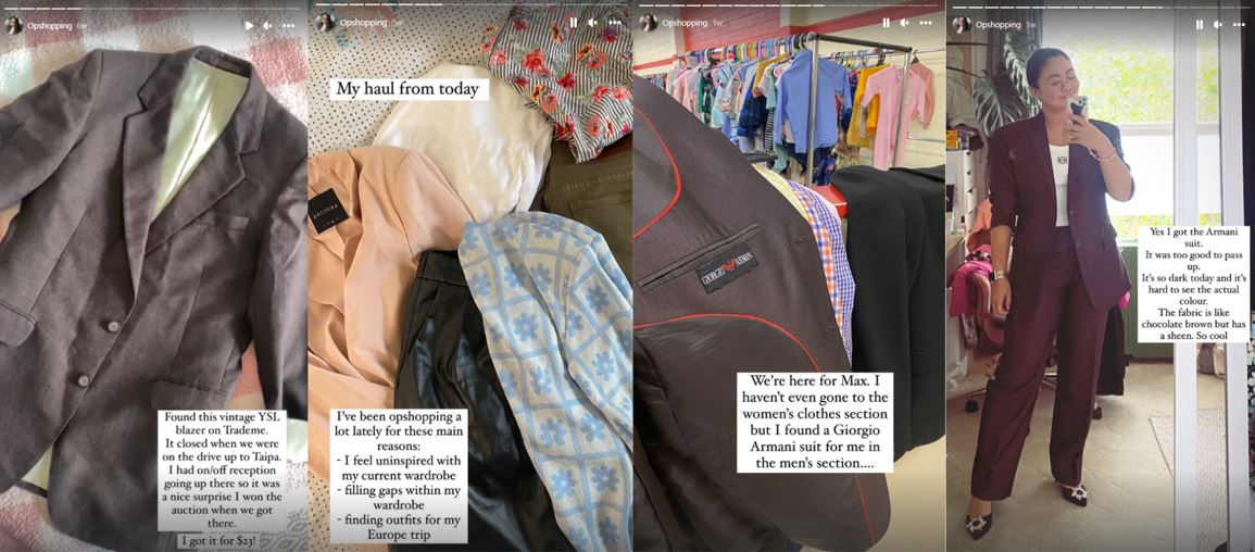 My best finds so far have been my vintage YSL blazer I got for $25 and a Giorgio Armani suit I found at the men’s section. I’ve shared my opshopping finds in my IG story highlights. I’ve also shared my opshop hauls and where I opshop over on my Tiktok.