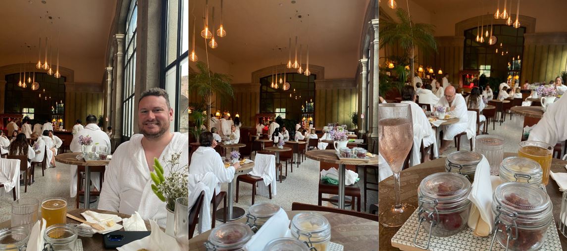 One of the best things included in the entry is having the Aperiterme, an evening apertif included. You also get the robe, slippers, towels and lockers for your stuff included too. Everyone in their robes can grab food and drinks in the dining hall before they check out the rest of the spa. This was so good and there were many options for food and drinks, including cocktails.