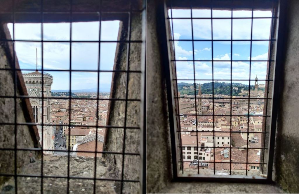 The photo on the right shows how narrow the way up to the dome was and it was also steep! Was I going up or down in that photo? Hard to tell! It was tiring but the views of Florence was awesome.