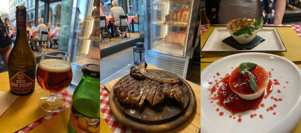 For our last dinner in Florence, we actually ventured out of Mercato Centrale and picked Osteria Dell’Osso restaurant. We had to try some Florentine steak while we were in Florence. Our steak was good and we also had to get dessert. Max is loved tiramisu but I’m more into panna cotta. This was pretty good.