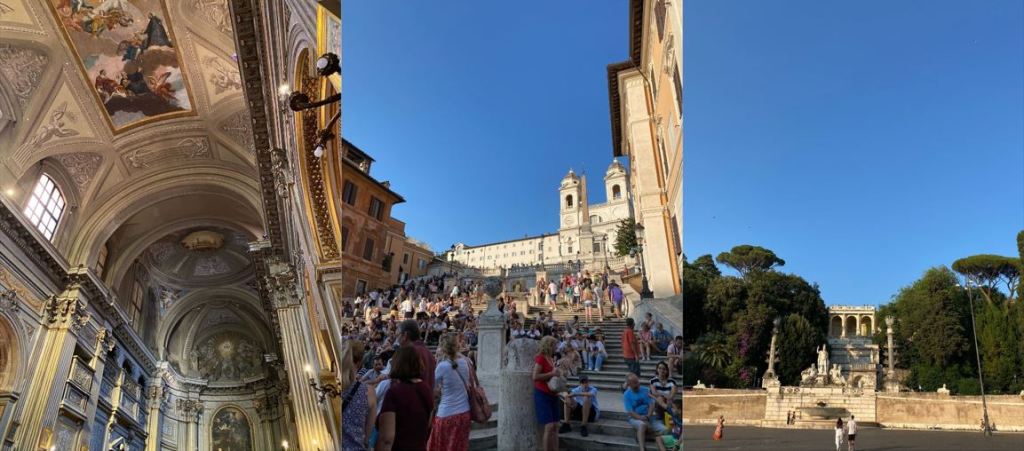 After the fountain, we checked out the church located opposite it: Chiesa dei Santi Vincenzo e Anastasio – Rettoria. I saw on Tiktok that this church has 22 embalmed hearts of popes preserved. You can’t see it but it was nearby so we went in. We also walked by the Spanish steps and then we ended up at Piazza del Popolo.
