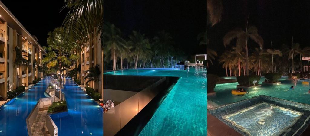 Then I went back and I opted to chill by the other pools. I found these pools were quieter as the upstairs/rooftop pool had a bar with music blasting. This pool area was more relaxing and I could read in peace. It was so much quieter and barely anyone swimming in these pools. It was great.