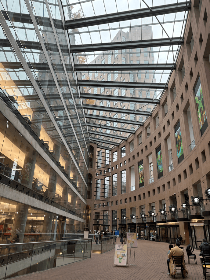 We went inside too and it’s cool to see go through an actual working library for free. Max looked at the pottery books and the rooftop is also cool and free to enter.