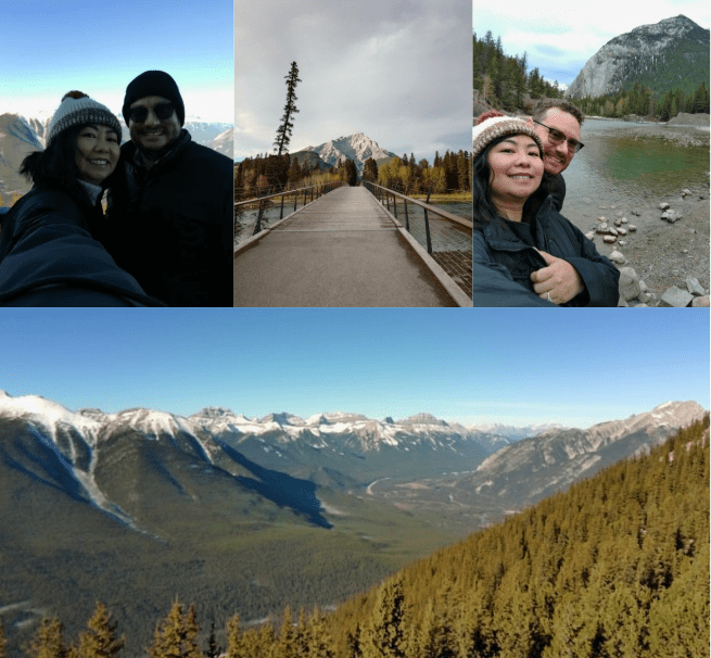 This is the Banff Pedestrian Bridge and the autumn colours of Banff with the mountain at the back was so beautiful. I truly loved our time there.