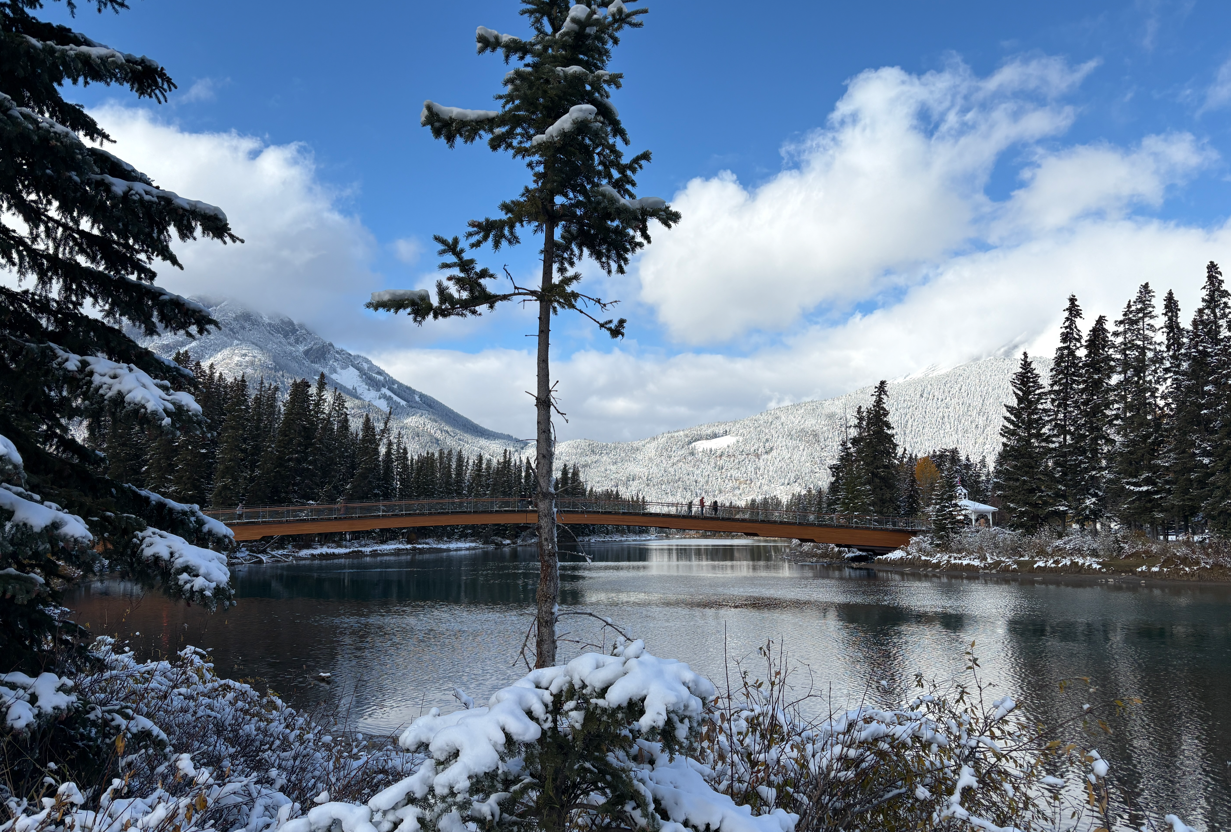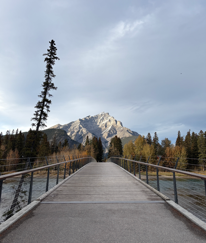 This is the Banff Pedestrian Bridge and the autumn colours of Banff with the mountain at the back was so beautiful. I truly loved our time there.