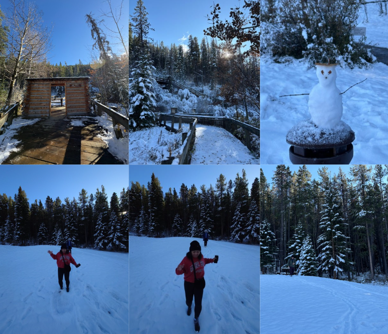 The next morning, we had to check out and take the shuttle back to Calgary. We woke up with snow falling outside our window. It looked magical but it was quite slippery outside.