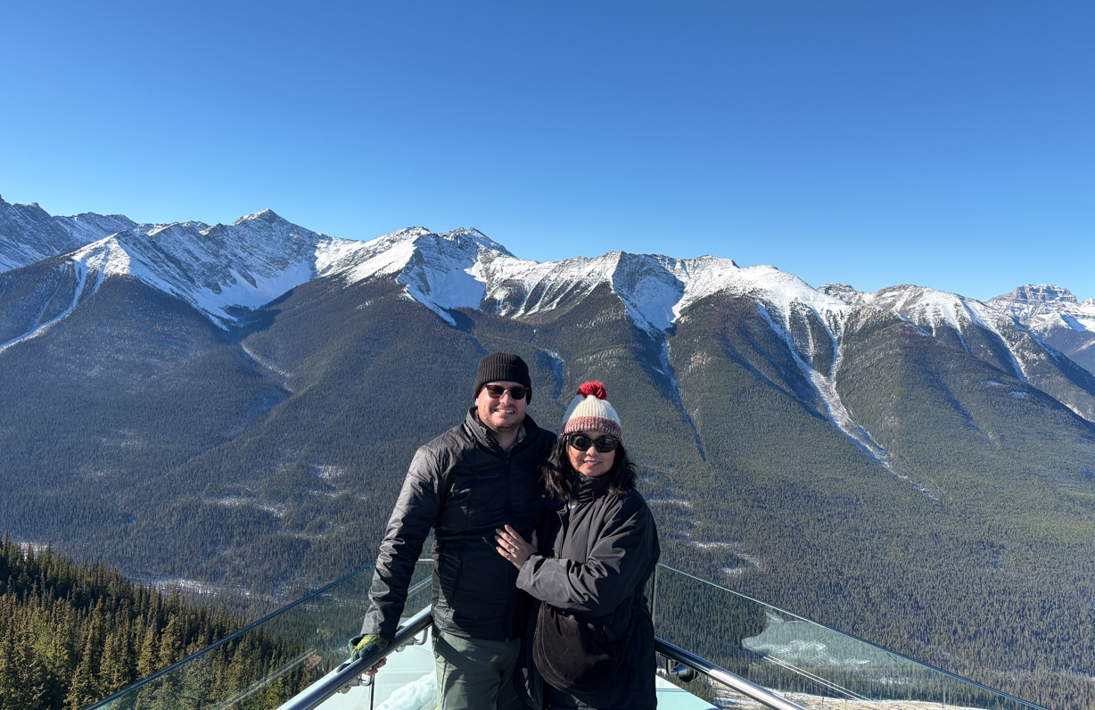 It was gloomy on our last morning in Banff so it wasn’t too bad that we were leaving that day. We had incredible sunny clear skies weather while we were there so we got pretty lucky. The sunny blue skies made visibility of the scenery pretty clear and amazing. Although it was cold, we had the perfect conditions to explore the area. I’m so grateful we had an amazing time in Banff.
