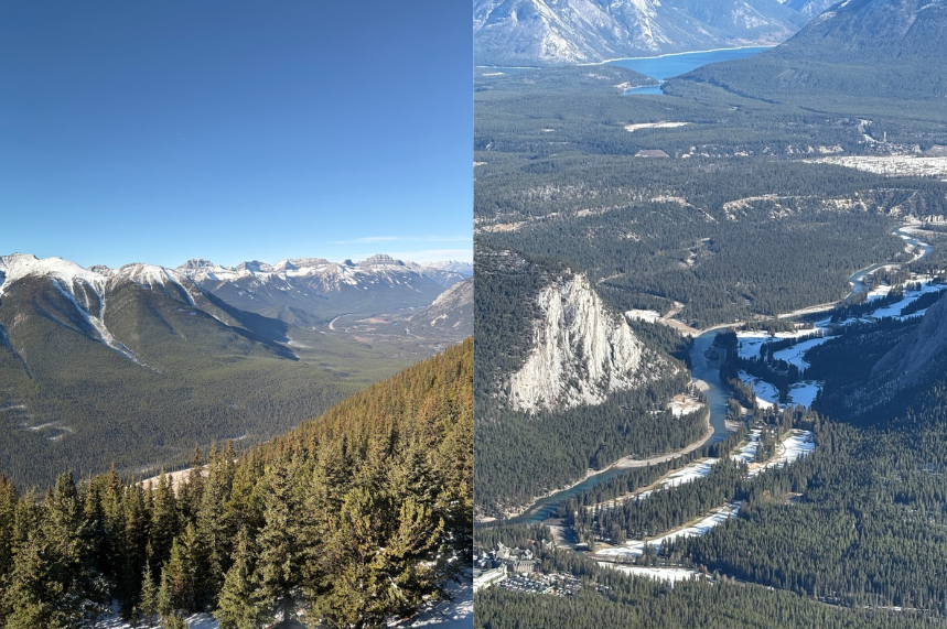 The scale of Banff National Park is incredible and especially coming from NZ. NZ is also stunning but it is a much smaller country compared to elsewhere in the world. This part of Canada was huge and we only saw a small portion of it. All we could see were mountains and trees. The highways/road were pretty well hidden and they blend through the landscape which was fascinating. From up here, Banff town did look so small too, in comparison to how huge the untouched Banff National Park is.