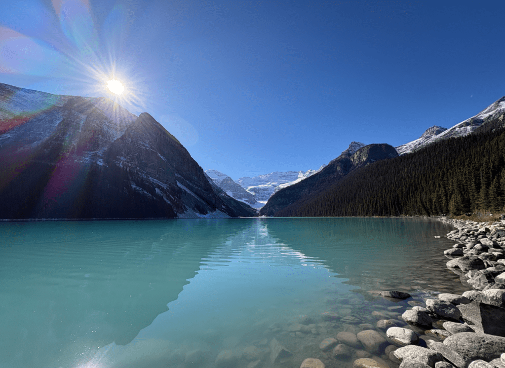 Lake Louise is a hamlet in Banff National Park and it’s famous for its turquoise. glacier-fed lake waters. It’s a popular spot so be aware there will be a lot of people taking photos and videos.
