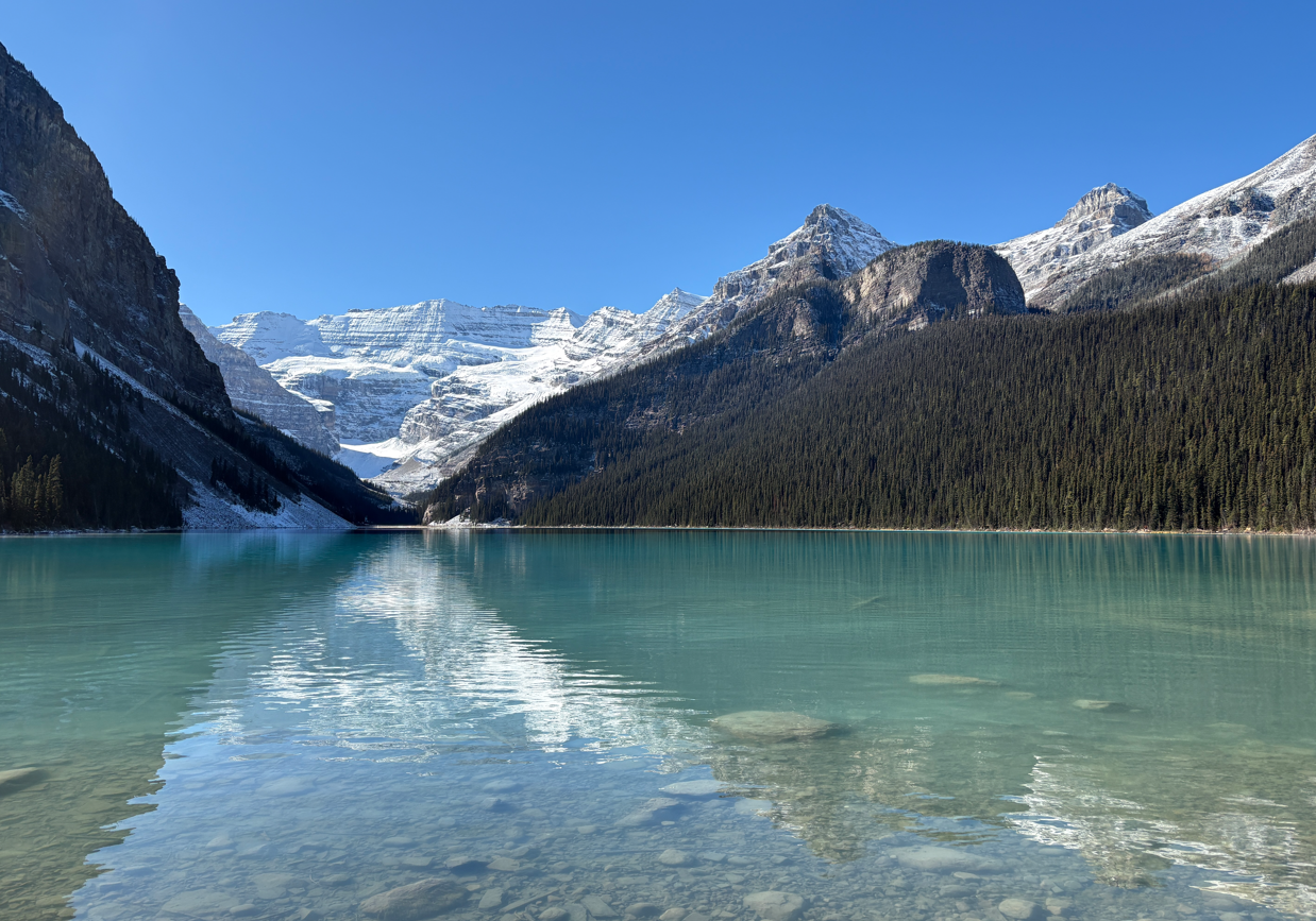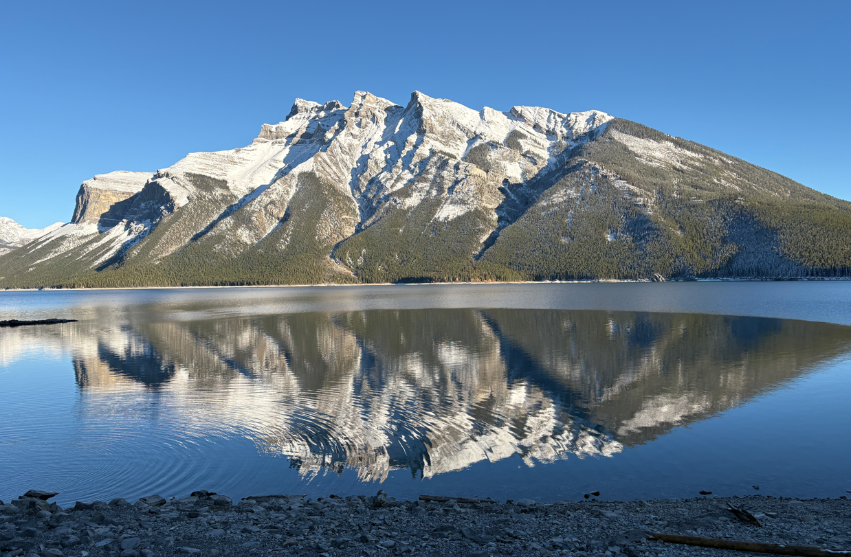 Lake Minnewanka is a glacial lake and it the second longest lake in the Canadian Rockies. The calm water of the lake mirrors the snow capped mountains which was stunning.