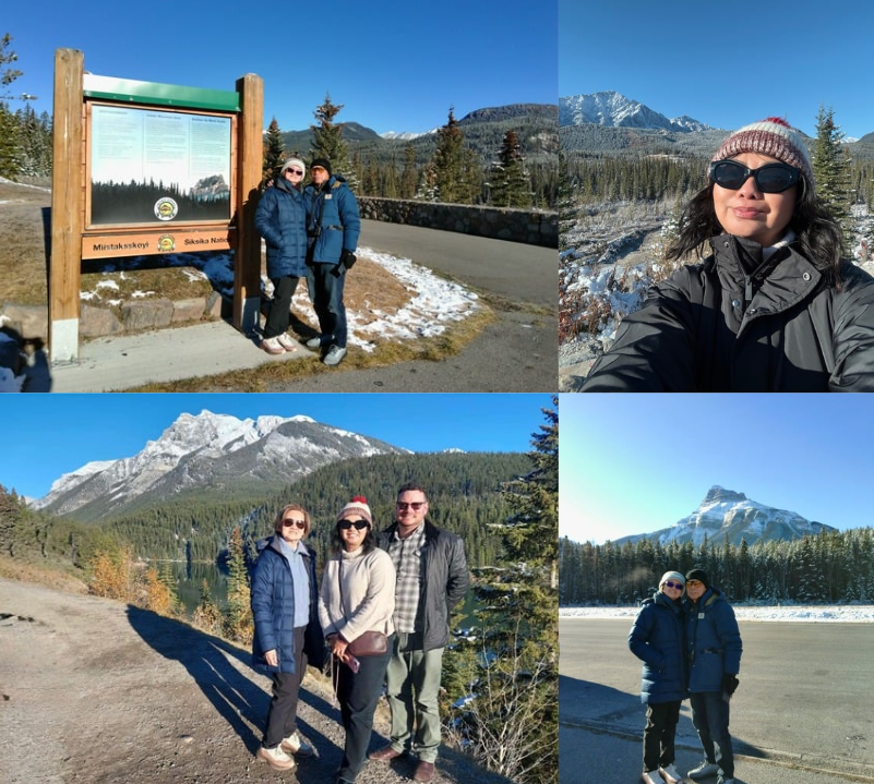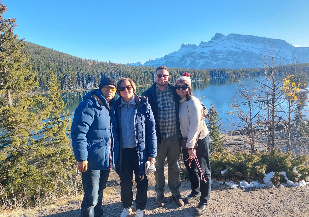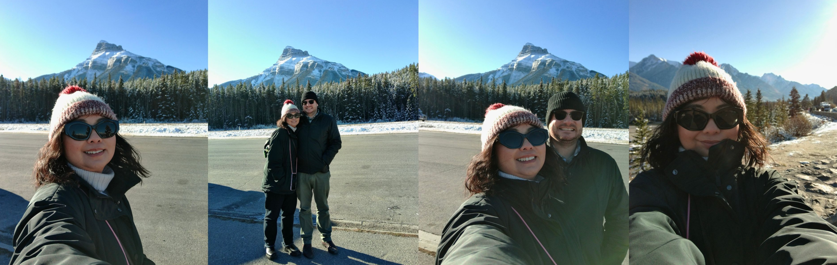I think this was the only photo of us 4 together. This was taken by our tour guide at Two Jack Lake. We were all tired and cold by then.