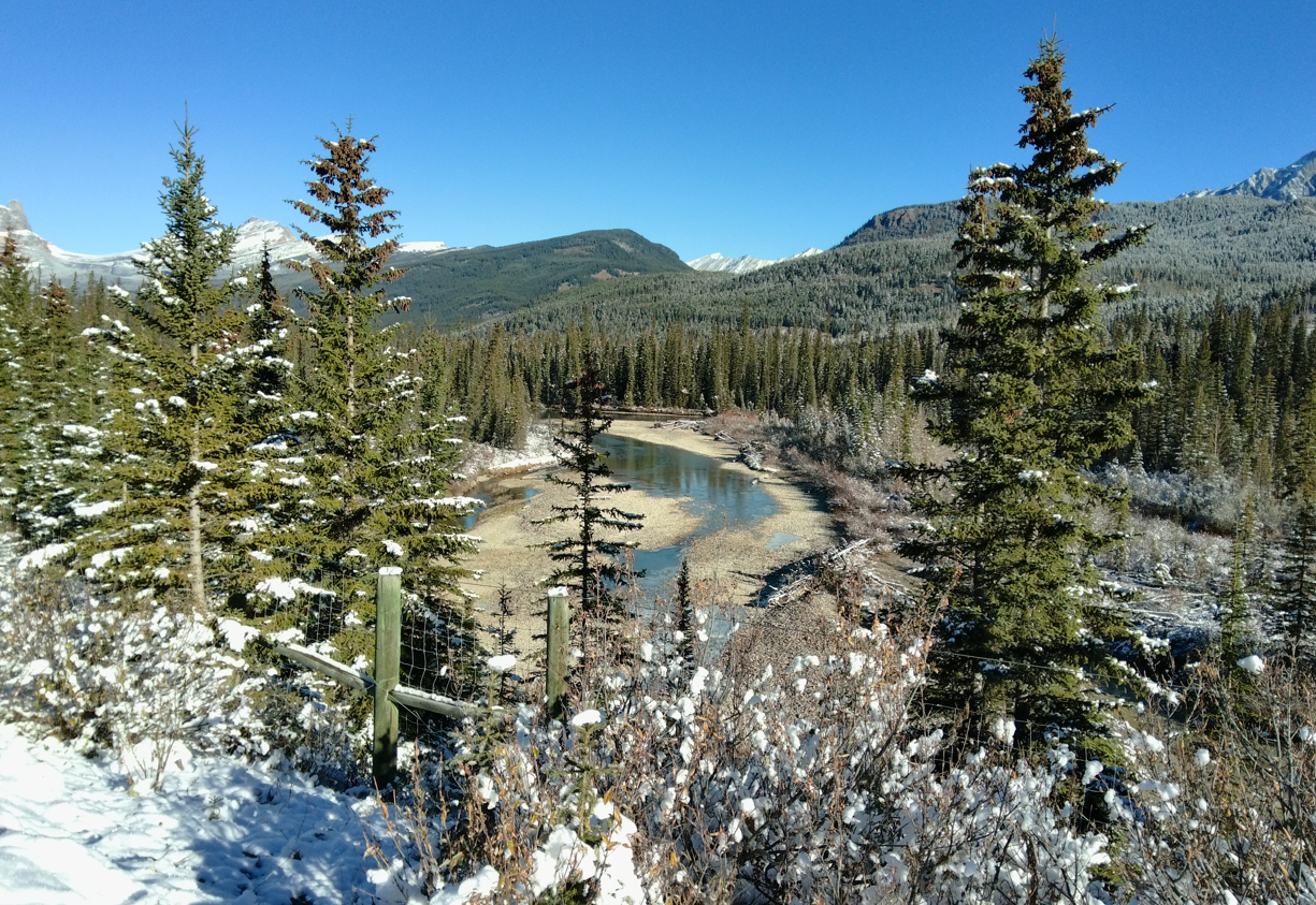 There was a walkway behind the shops and a bridge over Bow River so we checked that out after.