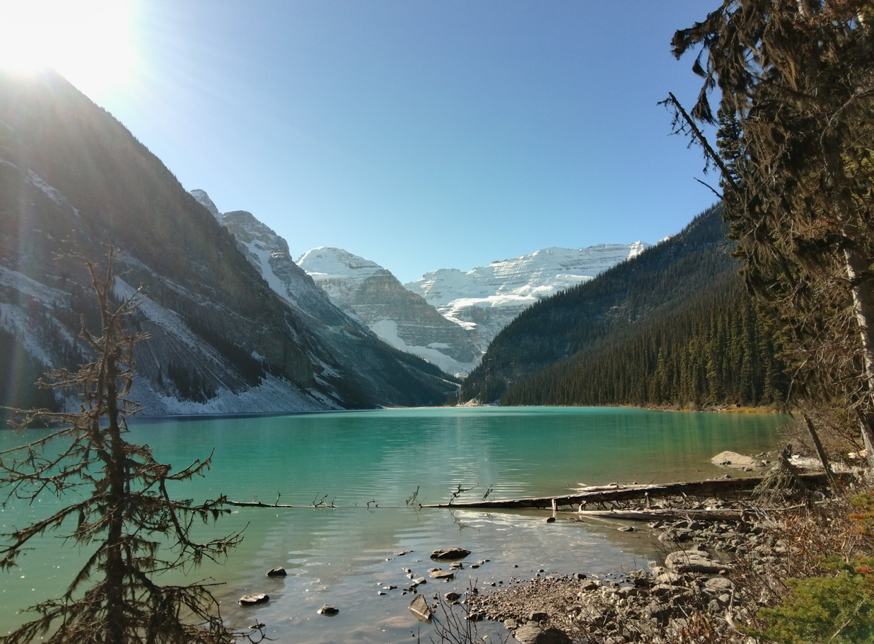 There are longer hikes from Lake Louise but we didn’t have enough time for that. I’ve heard the walk to Lake Agnes is also amazing. We walked around the lake though and took in more of the stunning scenery. The further we walked from the main area, the less crowded it was too.